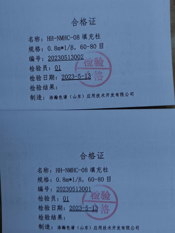 浩瀚色谱(山东)应用技术开发有限公司,研发1根填充柱直接进样测定非甲烷总烃,无需甲烷,总烃的差减,柱效高,分离好,分析时间短,误差小,结果准确。
